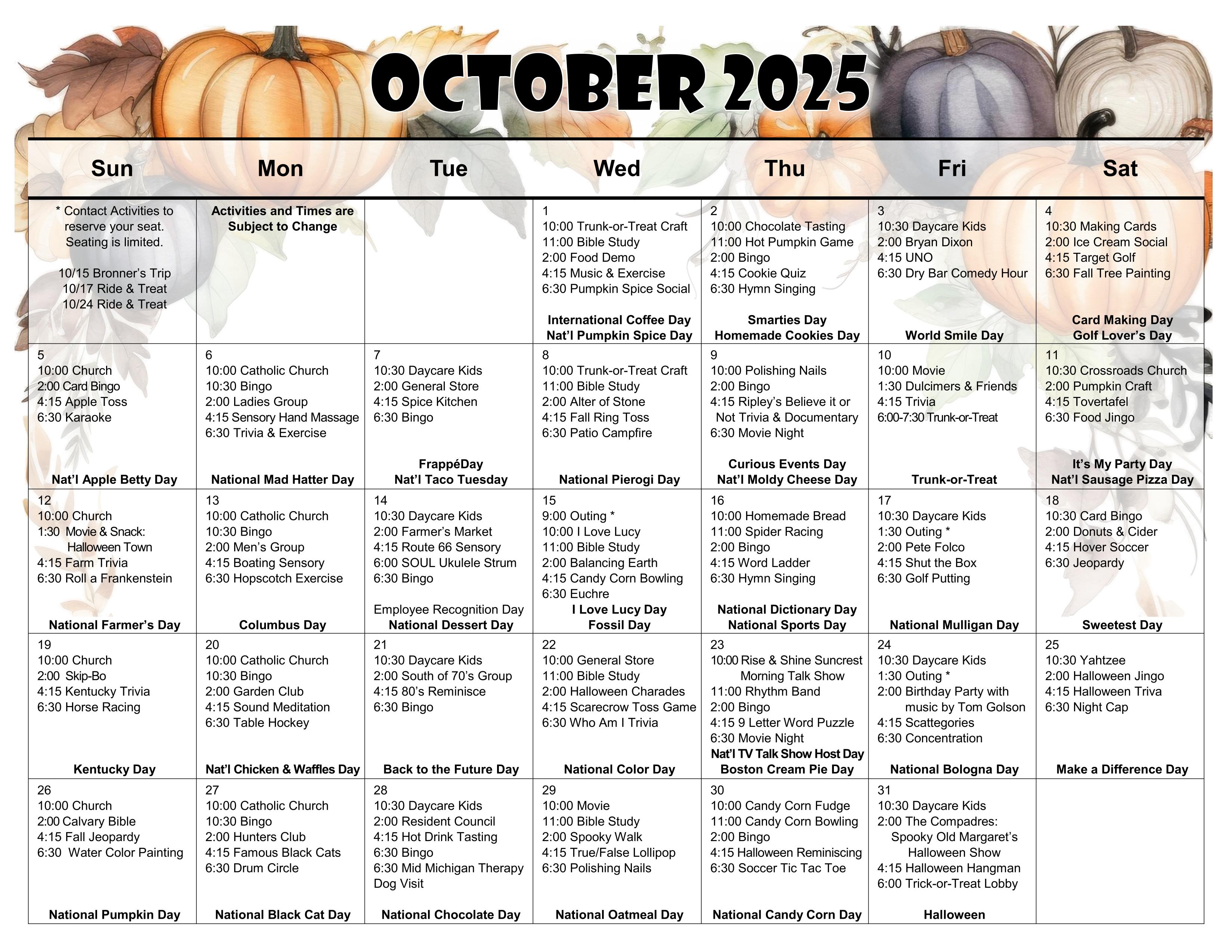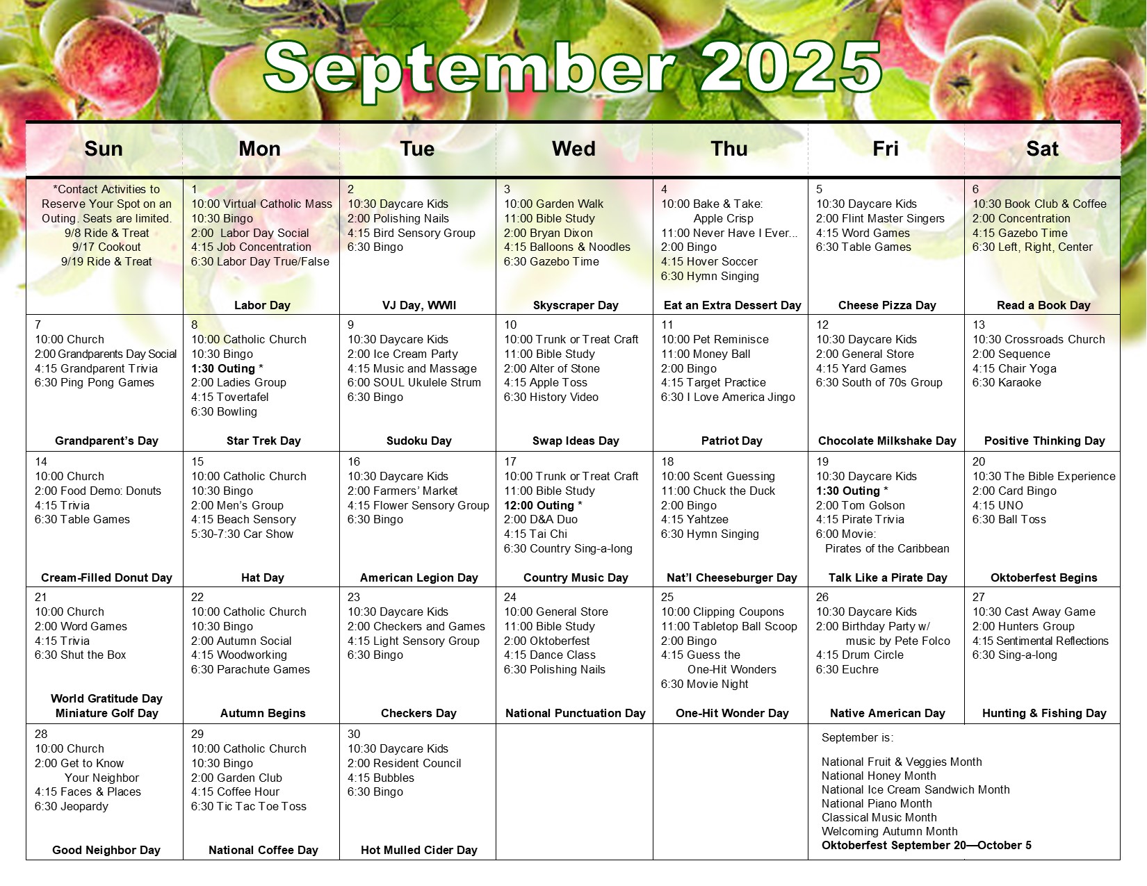 Feel free to check out any of the events that are being held at Lapeer County Medical Care Facility! Our residents have the ability to engage in these activities to socialize and get to meet other residents and families! If you have any questions, please reach out to [email protected].